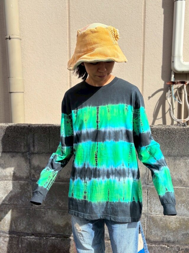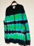 タイダイ 長袖 Tシャツ Lサイズ ブラック×グリーン ボーダー HIPPIES DYE HD25-49