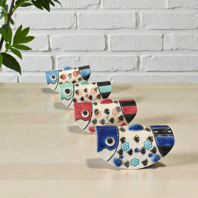様々な絵の具や釉薬を使って、一体でも華やかに飾って頂けるよう、カラフルに仕上げました。