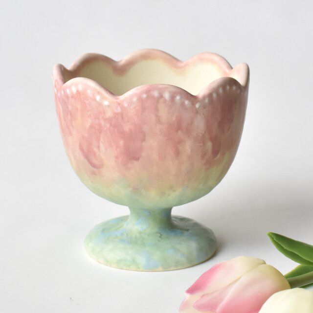 色味と形に一目惚れして購入しました。素敵な梱包でお届けしてくださりとても嬉しかったです。作品の優しい色合いや装飾もとっても可愛くて、1番のお気に入りの器になりました!大切に大切に使わせていただきます。本当にありがとうございます。