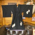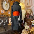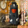 着物リメイク ミニミディワンピース/ドレス/洗える化繊 帯サッシュベルト 黒の静寂 × 唐子の祝祭 KW-1283