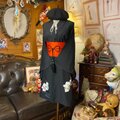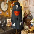 漆黒に、愛らしい唐子たちが遊ぶ風景を配した、贅沢なリメイクワンピースです。