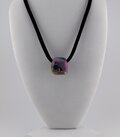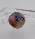 ピンク色をベースにブルー、グリーンのグラデーションに金箔プラチナ泊を散らした玉に殿、姫のパーツをを埋め込みました。背景に藤の花をあしらい、雅に仕上げてみました。帯留めですが、お手持ちのチェーンや紐でペンダントヘッド仕様も華やかです。