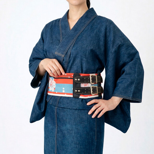 ※女性が帯ベルト(帯ベルトCの形です)を締めている様子は、トルソーに着せた状態からAIでの生成になります。柄など正確ではない場合がありますので、他の画像やYouTubeの映像でご確認ください。