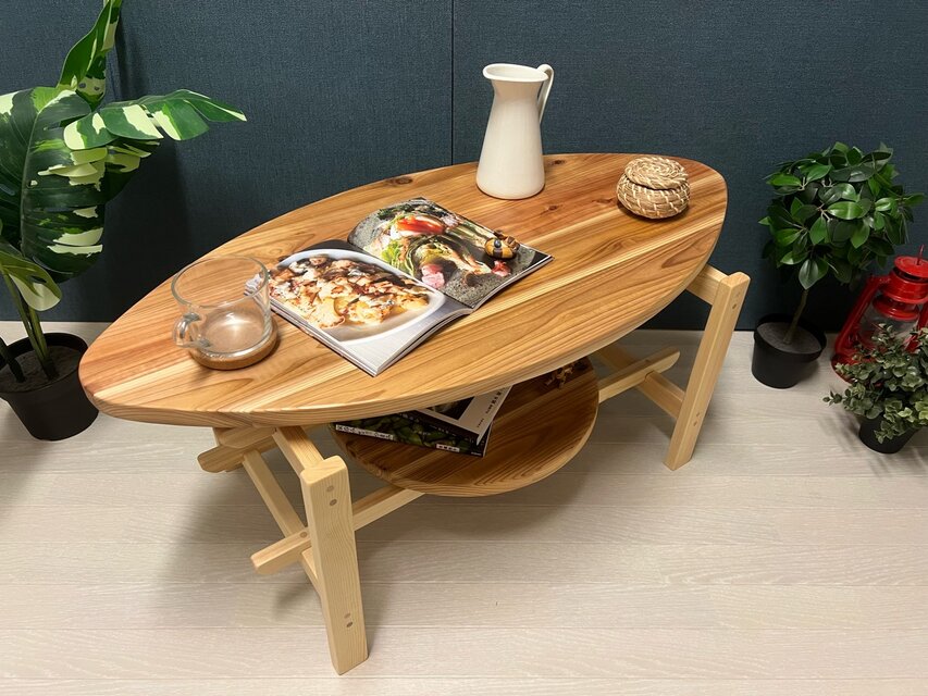 ◎荒々しい木目が美しい、杉材を天板に使用したローテーブルです。