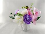 胡蝶蘭・芍薬・ピンポンマム・スカビオサなどのお花になります。