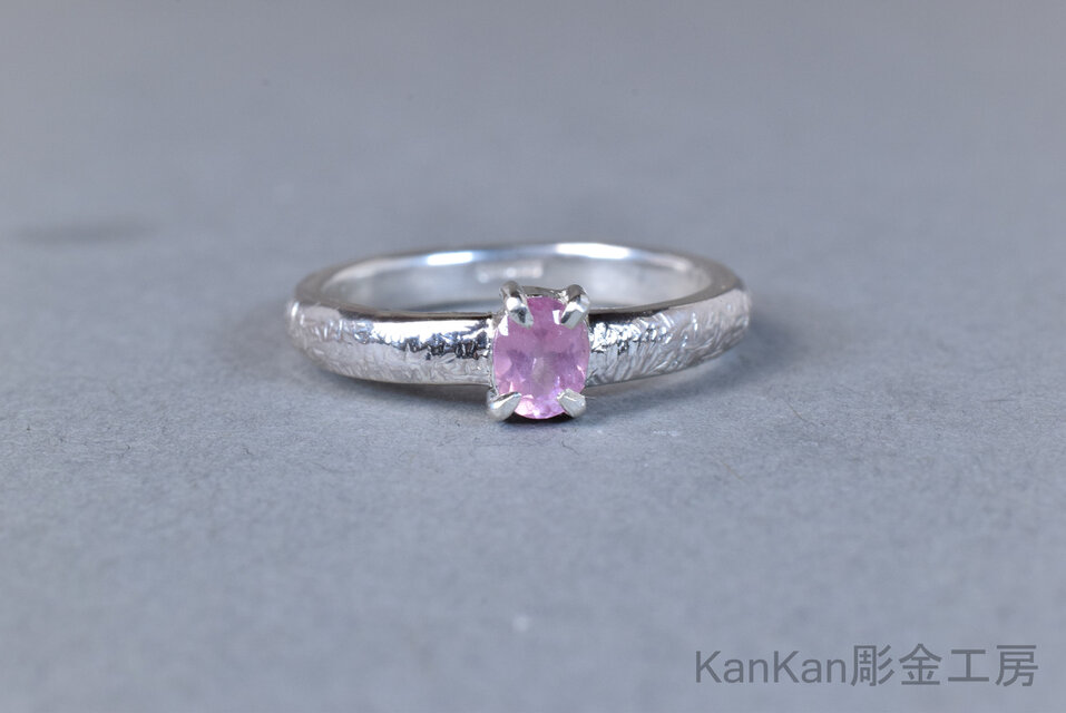 銀の質感にも、石の色味と呼応するわずかな霞みを持たせています。