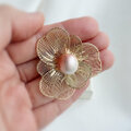 大人のくすみピンク コットンパール花ブローチ4cm 入学式 卒業式 フォーマル 母の日 大人上品