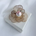 立体感がある、透かし花びらが重なった軽やかなコットンパールをあしらった、