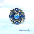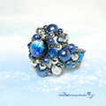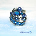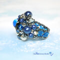 ホタル玉に合わせたブルー×シルバーの配色が、全体をクールに引き締め、存在感のあるボリュームリングながらも洗練された印象に。