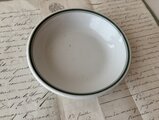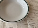 1900年〜1920年頃に製造されたと思われる本品は、白磁ならではのしっとりとした艶やかな陶肌が特徴。縁に施された深いグリーンの細ラインが、アイボリーの優しさをキリッと引き締め、凛とした表情を作り出しています。