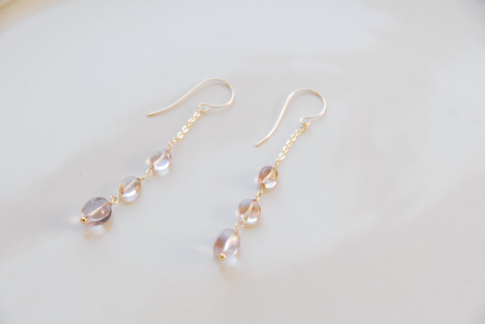 小さめのアメトリンのタンブルを3粒使ったピアスです