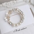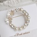 白花を仲良く並べて、ビジューとパールで仕上げたブローチになります*