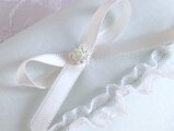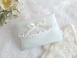 淡くやさしいアクアカラーに、繊細なフリルレースと小さなリボンをあしらった