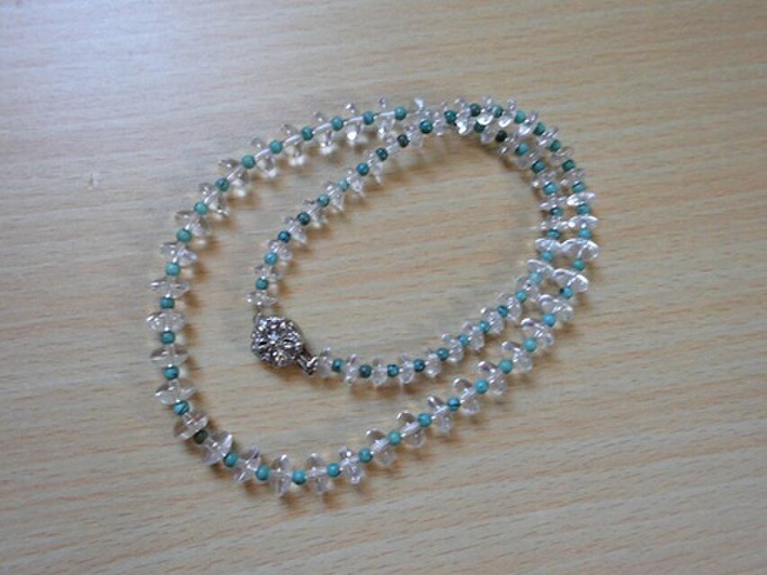 ソロバン珠の様な「水晶」の間に 小さい「ターコイズ」を入れ