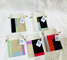 しっかり目の綿素材で作った色とりどりの巾着です。