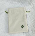 裏面には四つ葉のクローバーを刺繍しています。