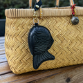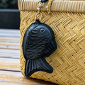 佇まいも可愛くて、たい焼きそのまま。魅せアイテムとして鞄やリュック、ストラップを使って肩にかけたり、ベルトに着けるなど。遊び心を持って身に付けてもらえると嬉しいです。
