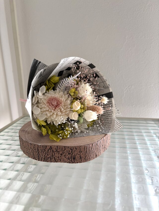 使用花材‥アジサイとカスミソウはプリザーブドフラワー