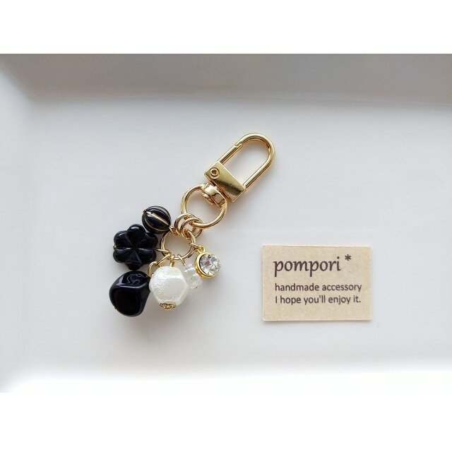 モノトーンのビーズでまとめたキーホルダーです。