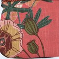 甘くてスモーキーな赤にポピーとルピナスが描かれてとても雰囲気があるデザインです。上部はふんわりしたウールの粗い織地、