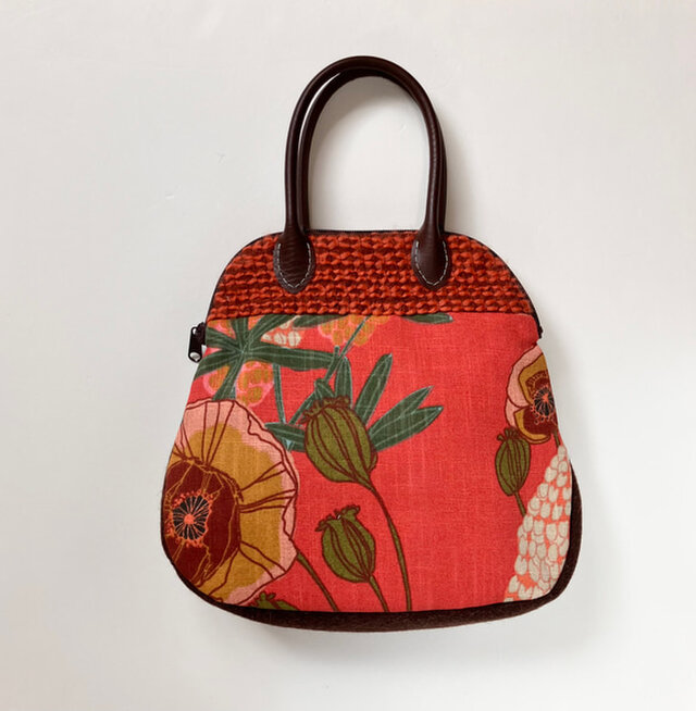 小さなボストンバッグ ハンドバッグ ポピーとルピナス