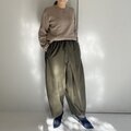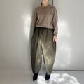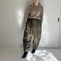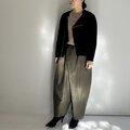 リラックス感のあるパンツに仕上がりました。パンツにボリュームがあるので、トップスはコンパクトなシルエットがバランスよく着こなせそうです。