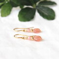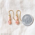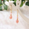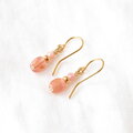 ほんのり透明感と艶感のあるオレンジピンクのインカローズに淡いピンクのインカローズを合わせ、アクセントにゴールド色のグラスビーズを添えた上品な雰囲気のピアスです。
