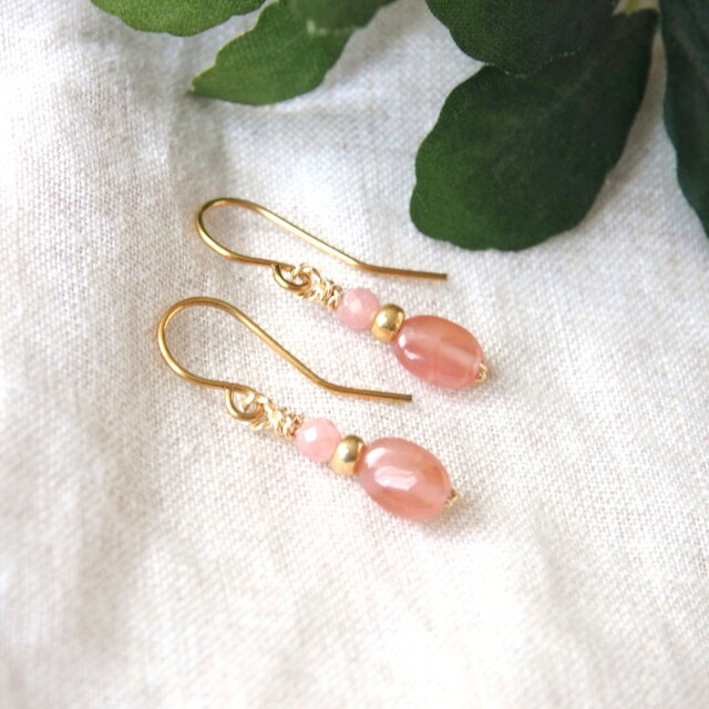 ・天然石:インカローズ(オーバル約7mm、ラウンドカット約3mm)