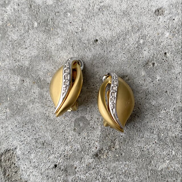 クラシカルなフォルムが魅力的なヴィンテージイヤリング。マットな質感のメタルにビジューが輝く素敵なデザインです。