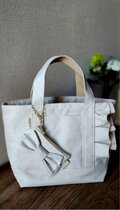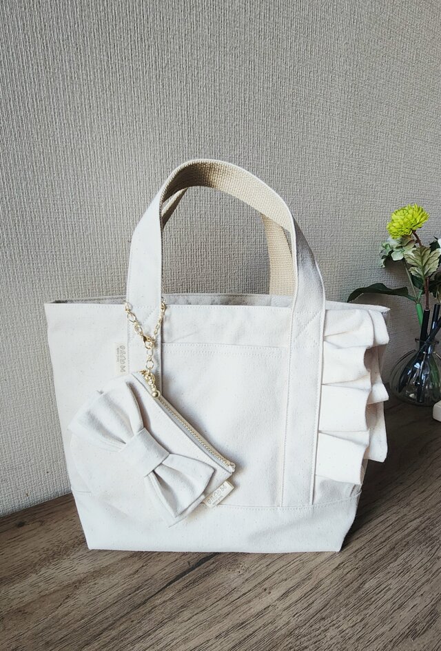 11号帆布生地で作った、フリルが可愛いトートバッグです。