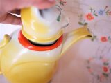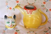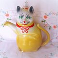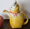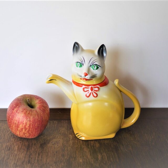 [黄色ネコ型ティーポット 陶磁器フィギュリン ドイツ ミッドセンチュリー]