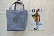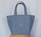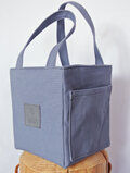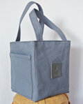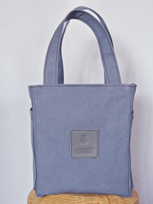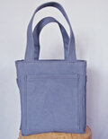 ブルーグレイ(パープルも入ってる)で、とてもオシャレな色の8号帆布で作ったスクエア・トートバックです。