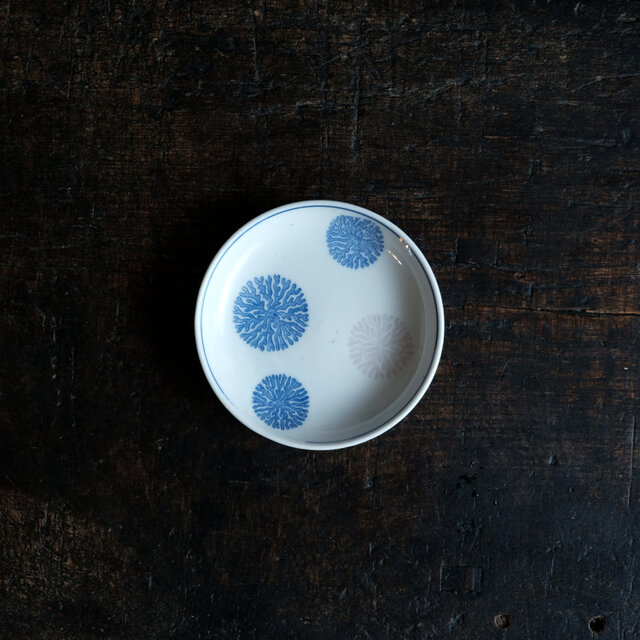 青とピンクの珊瑚◆時代物 珊瑚文印判小皿 骨董・antiques 丁寧な暮らしに。古道具 大正