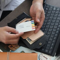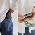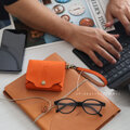 小銭入れはフラップのみにする事で、ファスナーやボタンを開ける動作を無くしスムーズに出し入れが可能です。財布を逆さまにしても、振っても小銭が落ちない設計になっています。