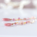 果実色の余韻 ― グァバクォーツ×ピンクトルマリン ロングピアス