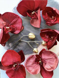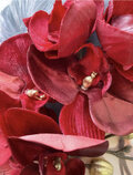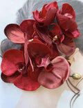 しっとりと濡れたように艶やかな赤のベルベット胡蝶蘭髪飾りアレンジです。