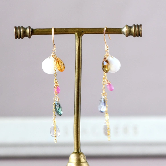 シックな色彩のマルチカラートルマリンを組み合わせたピアスです。