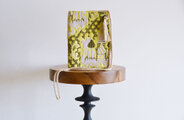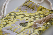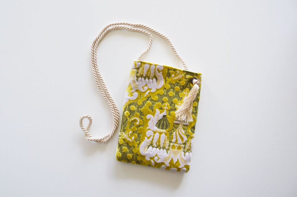 モスクをイメージしたオリエンタルなイメージにイエロー×ホワイトのカラーリングの輝くモケット生地を使ったスマホポーチです。