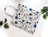 北欧風花柄、ナチュラル生成り色綿リネン地に可愛い花柄のペタンコなトートバックです。