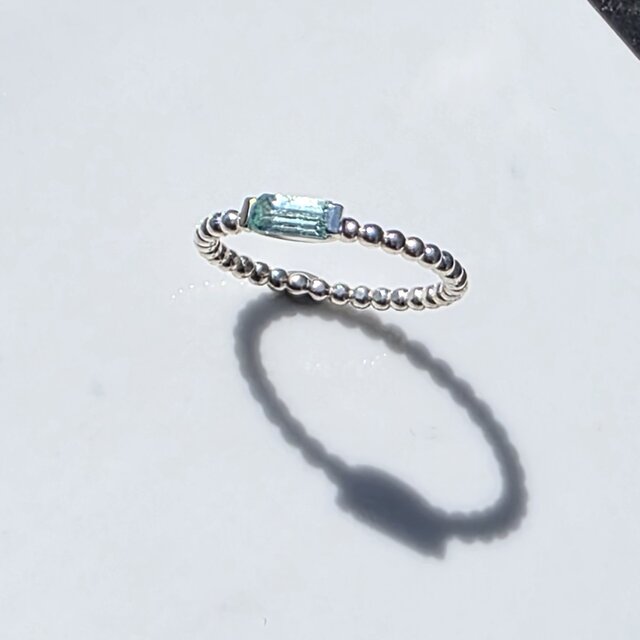 グリーン ベリル 3×6.5 0.35ct オクタゴンカット 上弦の月の石座 シルバーSV925リング