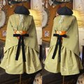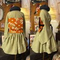❁︎お着物の形を最大限に活用した特性とスカートのふんわり感を演出するためのギャザー仕立てを行っている為、ウエスト付近の布が厚くなっています。付属の帯ベルト等を装着するとお写真の様に目立ちません。