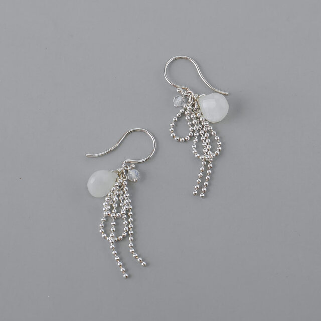 Silver925 ムーンストーンのmini Ribbonピアス[1092_WH]