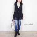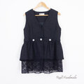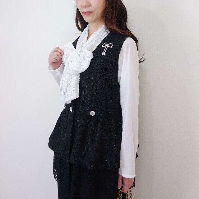 ブラックファンシーツイード・パールボタン裾レースペプラムジレ(セットアップ可)|卒園・卒業式・入学式・結婚式・カジュアル|