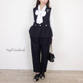 ブラックファンシーツイード・パールボタン裾レースペプラムジレ(セットアップ可)