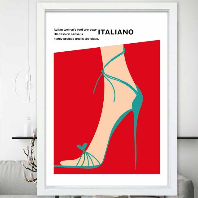 グリーンハイヒールとイタリアンレッドのコントラスト おしゃれセクシーポスター。