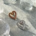 ゴールドトーンをベースに赤いラインストーンが煌めくオープンハートブローチピン。