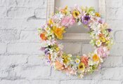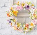 リース素材:アーティフィシャルフラワ-(造花):水仙・すみれ・プリムラ・あじさい・かすみそう・スイトピー・ストック・カーネーション・ラナンキュラス・小花・ユーカリなど。