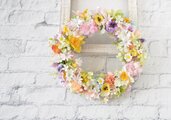 #グリーン #ナチュラル #春 #ライトグリーン #スイトピー #白 #水仙 #ピンク #パステルカラー #ウェディング #すみれ #春リース #花リース #アーティフィシャルフラワー #かわいい #明るい色 #オレンジ色 #きいろ #母の日 #パンジー #カーネーション