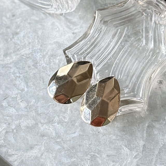 多面体カットされたデザインが特徴的な、ゴールドトーンのクリップイヤリング。