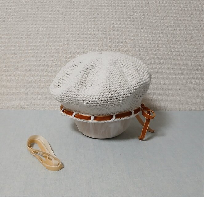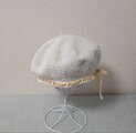 16年前のデザイン復刻|おとなしめベルベットリボンのベレー帽一点もの(オフホワイトに近いホワイト)+替えリボン
